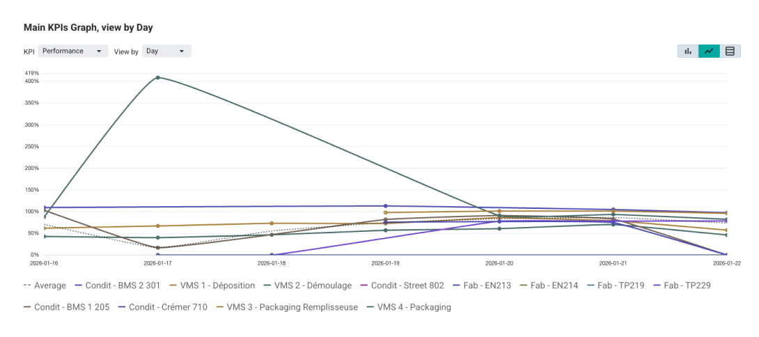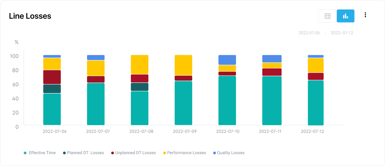 Now, in one glance, users can see, which line is worst, how far it is from its target, how it compares to others, where immediate action is required. No interpretation required.