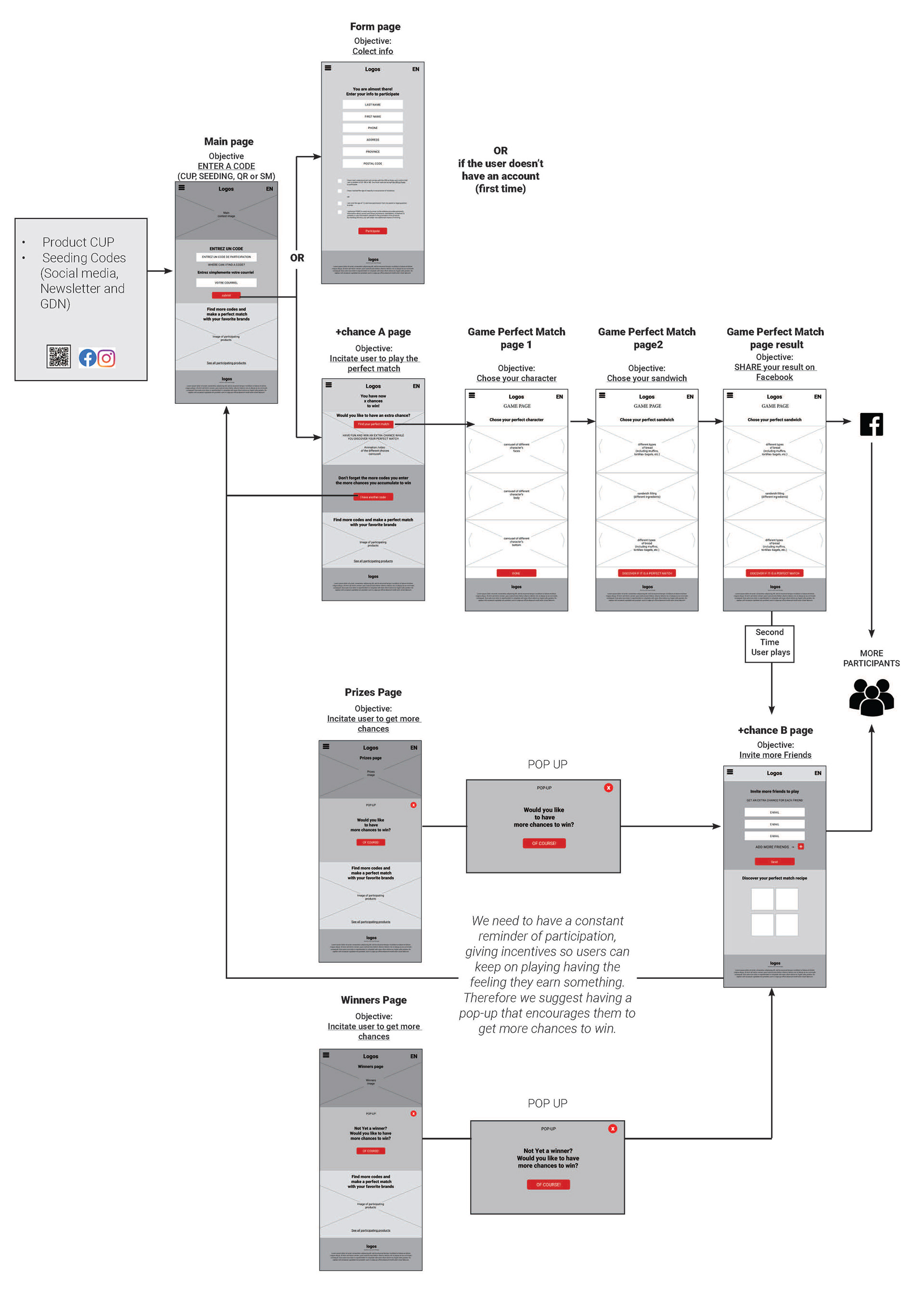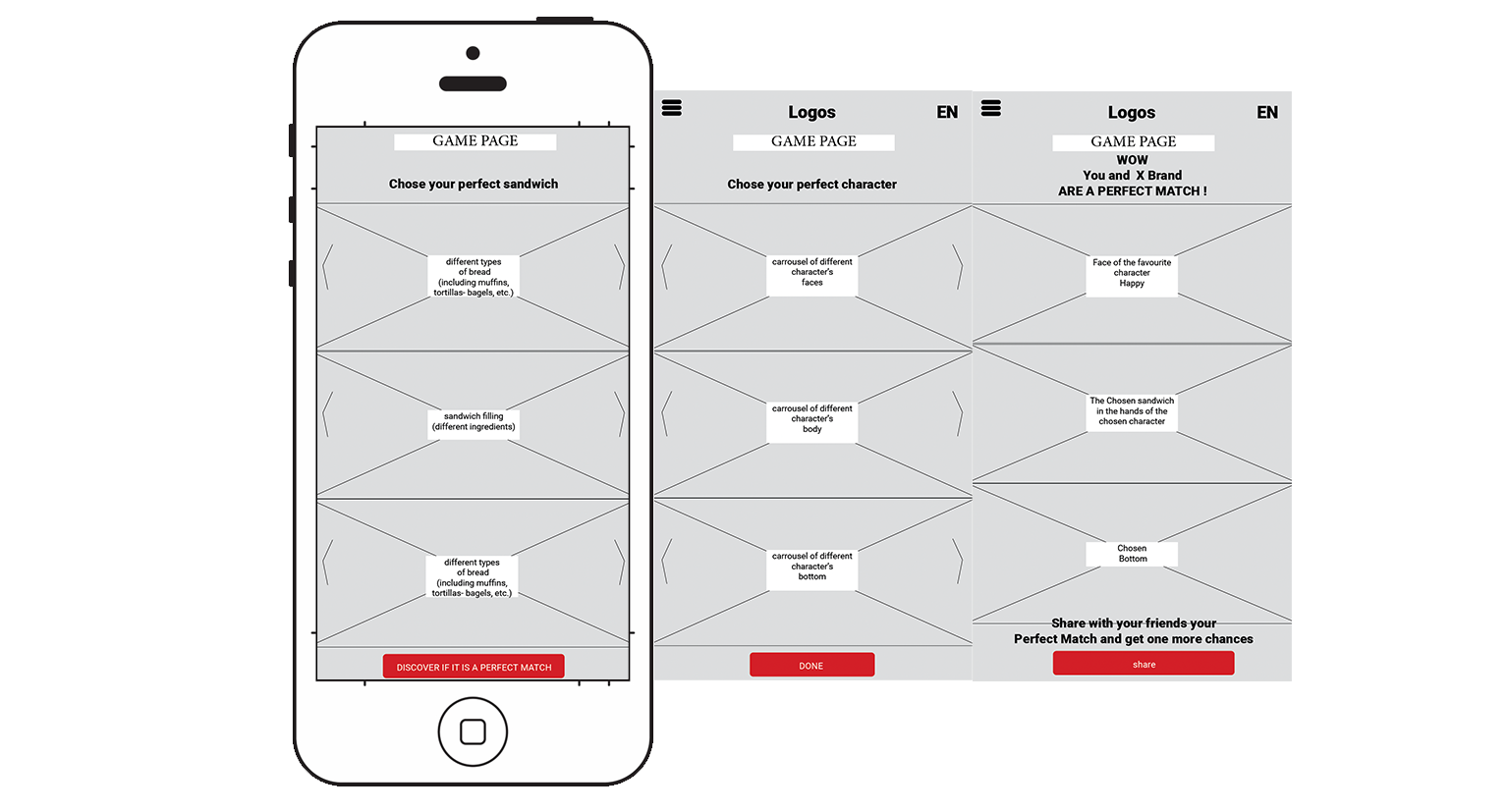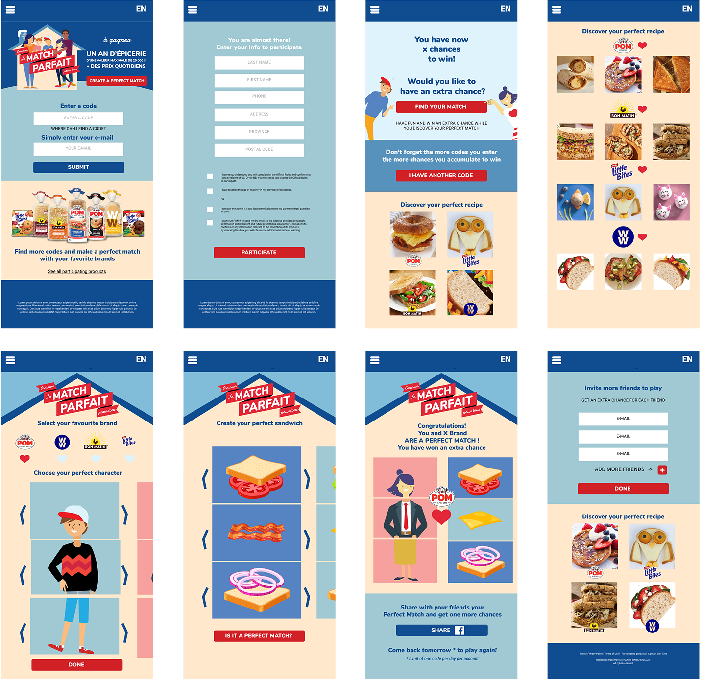 During the process, there was this idea of having a little mix and match game to engage even more with users and tie the different brands. Internally at the team, we had separated opinions if these could be a discouragement for the user, since most of them don’t want to spend that much time, especially for simple contest participation, but also another part of the team was aiming for the part where a little fun can engage consumers with brands.